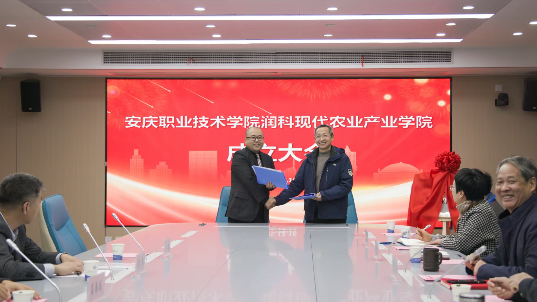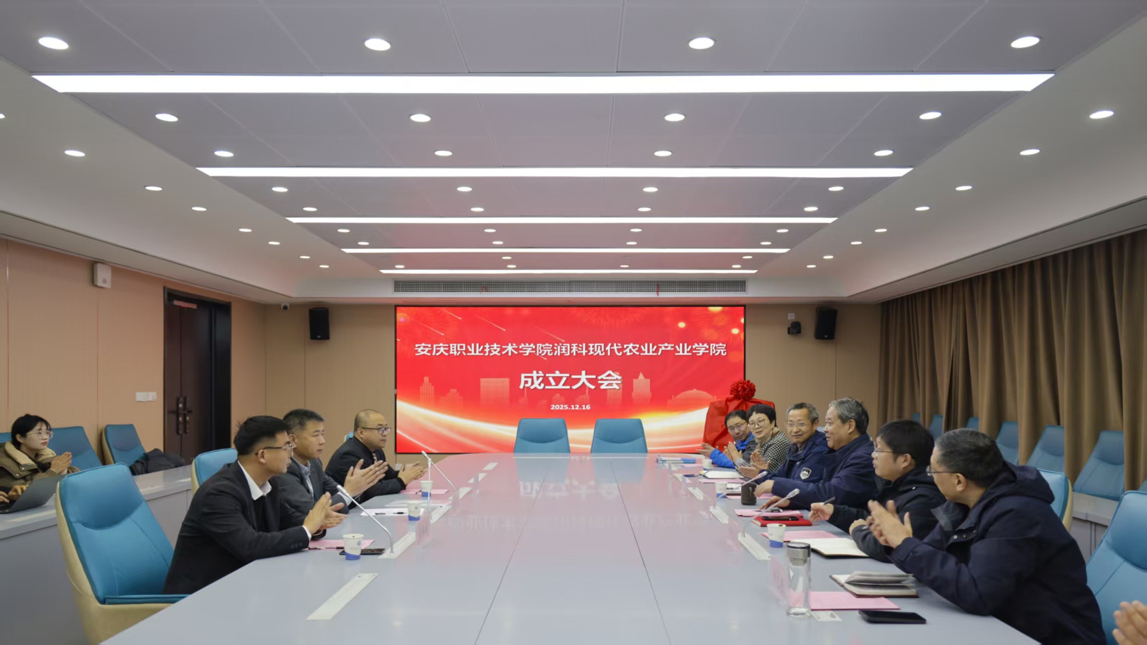 12月16日,安慶職業(yè)技術(shù)學(xué)院與安徽潤(rùn)科農(nóng)業(yè)科技有限公司共建的安慶職業(yè)技術(shù)學(xué)院潤(rùn)科現(xiàn)代農(nóng)業(yè)產(chǎn)業(yè)學(xué)院在校425會(huì)議室舉行揭牌儀式。安慶職院黨委副書(shū)記李克讓主持儀式。安徽潤(rùn)科農(nóng)業(yè)科技有限公司董事長(zhǎng)李兵、安慶市農(nóng)業(yè)農(nóng)村局副局長(zhǎng)周克海出席,安徽潤(rùn)科公司代表,校企合作辦、農(nóng)林與服裝學(xué)院負(fù)責(zé)人及教師代表參加。