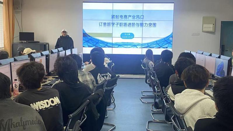 為深化校企合作育人,夯實訂單班培養(yǎng)質(zhì)量,引導(dǎo)訂單班學(xué)生明晰行業(yè)前景、規(guī)劃職業(yè)道路,4月3日下午,安慶職業(yè)技術(shù)學(xué)院現(xiàn)代商務(wù)學(xué)院特邀安徽省產(chǎn)業(yè)教授汪義德在2號實訓(xùn)樓501實訓(xùn)室,為24級云霽電商1班學(xué)生作題為《緊貼電商產(chǎn)業(yè)風(fēng)口——訂單班學(xué)生職場進階與能力突圍》就業(yè)指導(dǎo)專項講座。